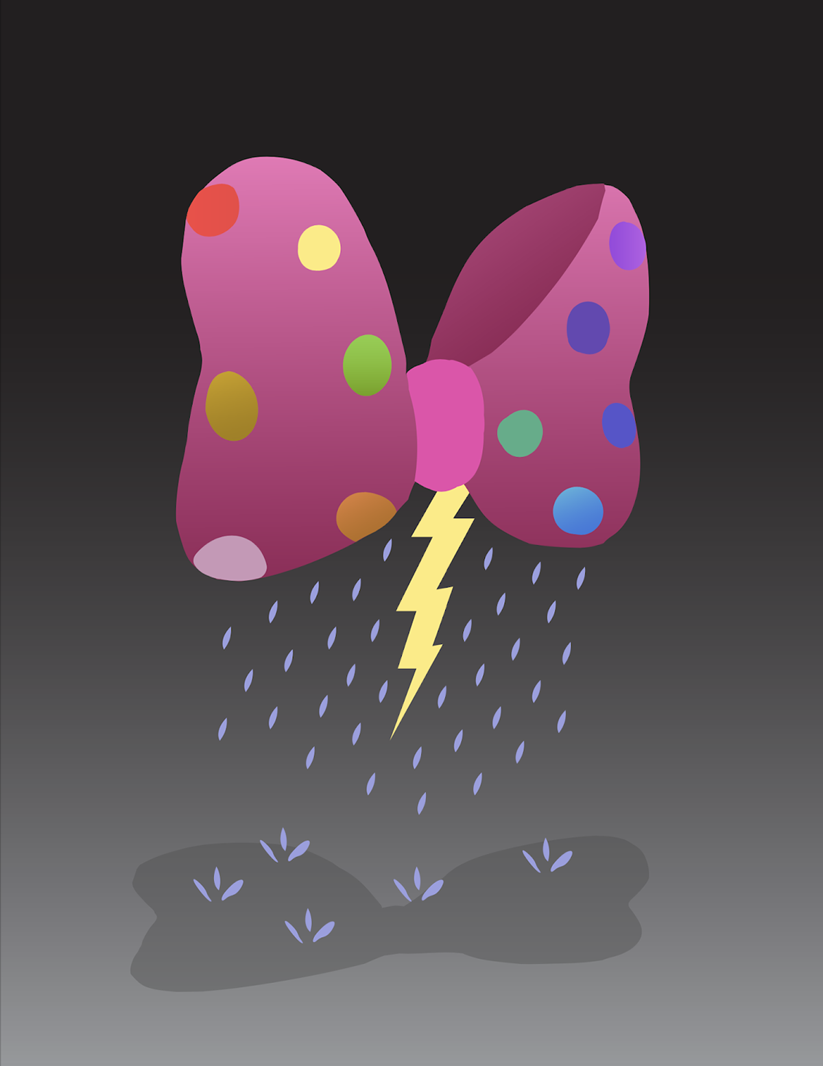 This is a "compound wordplay" on the word "Rainbow", as illustrated on September 2019. The cartoony Disney-style bow used as a raincloud is a perfect contrast to the otherwise grim nature of the photo itself.